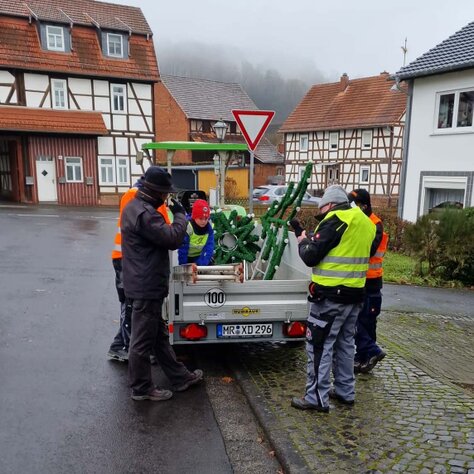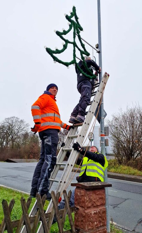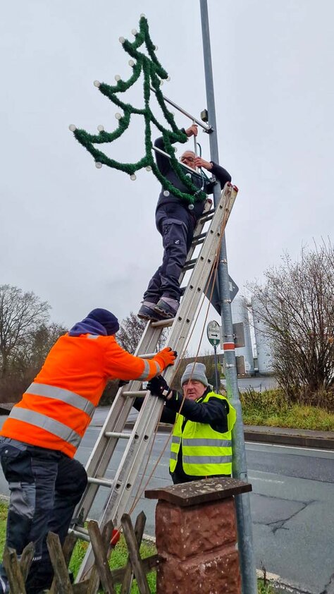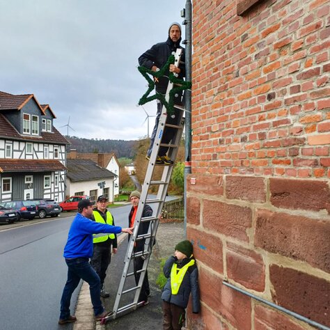 Inzwischen ist es ein gewohntes Bild in Rauschenberg, dass die Mitglieder des Kultur- und Verschönerungsvereins Rauschenberg e.V. für das Aufhängen der Weihnachtsbeleuchtung zuständig sind.