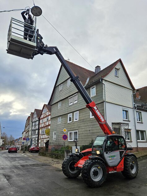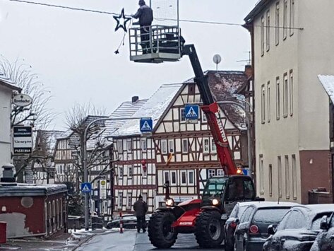 Inzwischen ist es ein gewohntes Bild in Rauschenberg, dass die Mitglieder des Kultur- und Verschönerungsvereins Rauschenberg e.V. für das Aufhängen der Weihnachtsbeleuchtung zuständig sind.