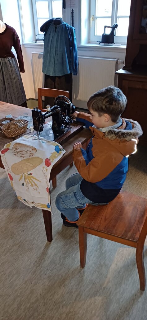 In einem Nebenraum, der früher das Himmelbett und ein vielfältiges Sammelsurium an Küchengegenständen und Beleuchtungsgeräten beherbergte, entsteht eine Nähstube, in der die Rauschenberger Tracht im Mittelpunkt stehen wird.